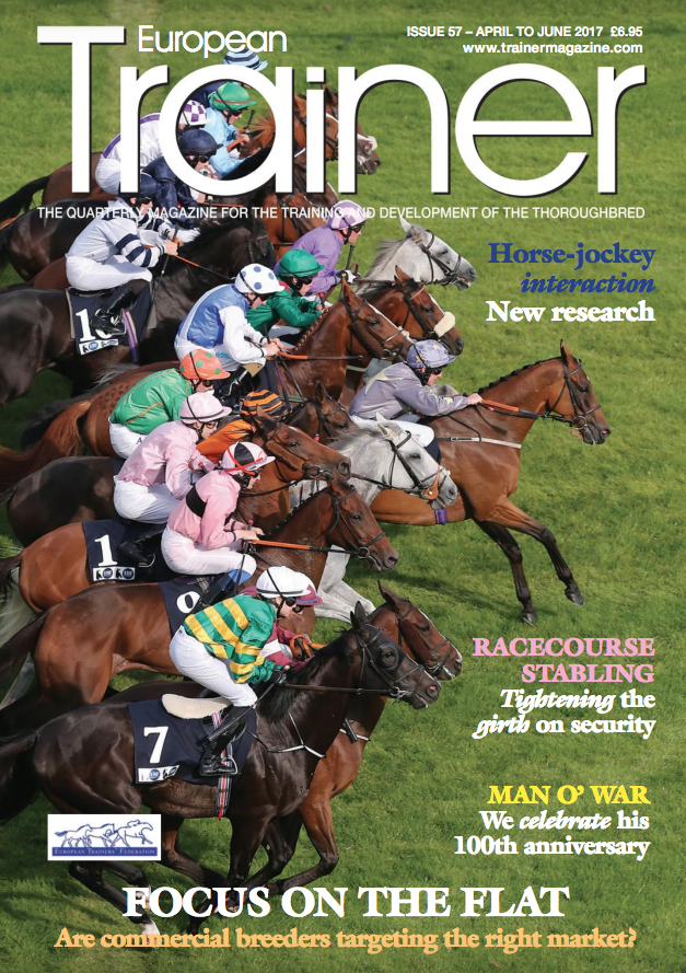 April - June 2017 - issue 57 European Trainer Issue 1 Apr Written By Web Master Click on the cover to read this issue! SUBSCRIBE HERE Contents: Featured Apr 11, 2017 Focus on the Flat - Are commercial breeders targeting the right market? Apr 11, 2017 Apr 11, 2017 Apr 11, 2017 The benefits of salt Apr 11, 2017 Apr 11, 2017 Apr 11, 2017 Staff Pensions - Safeguarding the future Apr 11, 2017 Apr 11, 2017 Apr 11, 2017 Training: Continuing Education for New York trainers Apr 11, 2017 Apr 11, 2017 Apr 11, 2017 Greece becomes EMHF member Apr 11, 2017 Apr 11, 2017 Apr 11, 2017 Don't forget the jockey: Horse-jockey interaction in racing Apr 11, 2017 Apr 11, 2017 Apr 11, 2017 Profile: Dr Lynn Hillyer - The veterinary chief of Irish racing Apr 11, 2017 Apr 11, 2017 Apr 11, 2017 No foot no horse - the influence of diet on the hoof Apr 11, 2017 Apr 11, 2017 Apr 10, 2017 Man o'War - The first 100 years Apr 10, 2017 Apr 10, 2017 Apr 10, 2017 Diagnosis of laryngeal problems: hocus pocus or cutting edge science? Apr 10, 2017 Apr 10, 2017 Apr 10, 2017 Racecourse Security - Does it pass the test? Apr 10, 2017 Apr 10, 2017 Apr 10, 2017 TRM Trainer of the Quarter - Didier Guillemin Apr 10, 2017 Apr 10, 2017 EUT57 Web Master