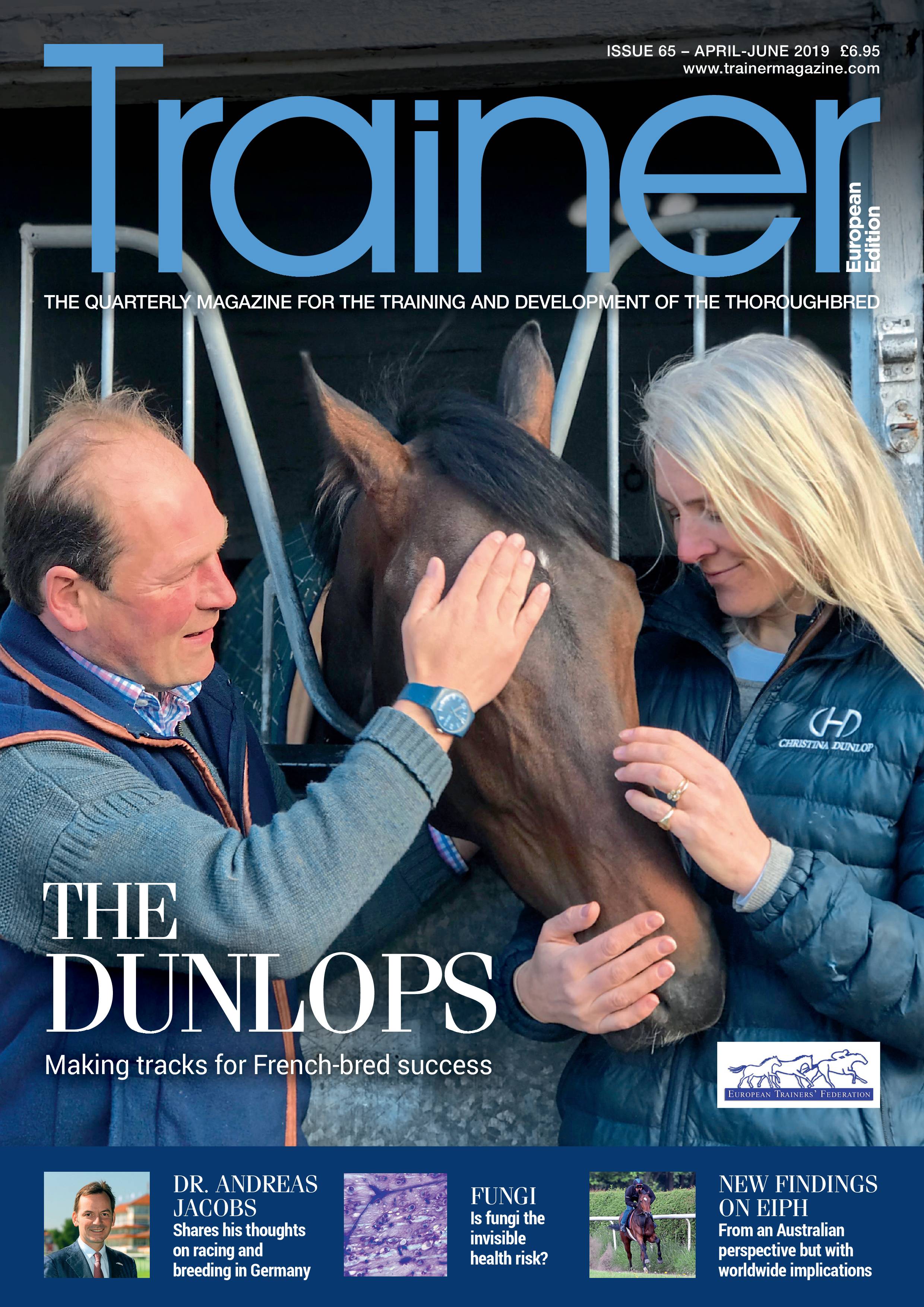 April - June 2019 - issue 65 European Trainer Issue 1 Apr Written By Web Master SUBSCRIBE HERE Click on the cover to read this issue! Contents: Featured Mar 22, 2019 Trainer Profile: Harry Dunlop Mar 22, 2019 Mar 22, 2019 Mar 22, 2019 All tied up? Mar 22, 2019 Mar 22, 2019 Mar 22, 2019 Finding Owners Mar 22, 2019 Mar 22, 2019 Mar 22, 2019 Dr. Andreas Jacobs Mar 22, 2019 Mar 22, 2019 Mar 22, 2019 EIPH: An Australian Perspective with Worldwide Implications Mar 22, 2019 Mar 22, 2019 Mar 22, 2019 Skin-deep: overcoming barriers for effective transdermal drug delivery Mar 22, 2019 Mar 22, 2019 Mar 22, 2019 Fungi - the invisible health risk Mar 22, 2019 Mar 22, 2019 Mar 22, 2019 VAT and tax-deductable expenditure across Europe Mar 22, 2019 Mar 22, 2019 Mar 22, 2019 Brexit Preparations? Mar 22, 2019 Mar 22, 2019 Mar 22, 2019 State-of-the-art training facilities come to China Mar 22, 2019 Mar 22, 2019 Mar 22, 2019 Why are leg boots not commonly used in racing? Mar 22, 2019 Mar 22, 2019 Mar 22, 2019 Racetrack birth and re-birth Mar 22, 2019 Mar 22, 2019 Mar 22, 2019 The latest from Gavin Hernon Mar 22, 2019 Mar 22, 2019 Mar 22, 2019 2019 Lycetts Team Champion Awards Mar 22, 2019 Mar 22, 2019 Mar 22, 2019 Hindsight: Simon Christian Mar 22, 2019 Mar 22, 2019 EUT65Harry DunlopDr. Andreas JacobsFungiBleedingEIPHSimon Christian Web Master