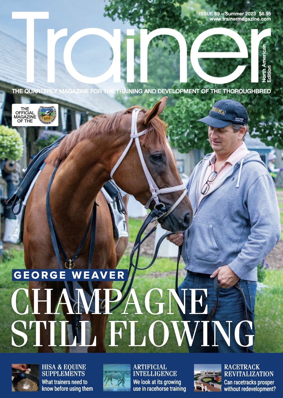 Summer 2023 - issue 69 1 Feb Written By Webmaster Click on the cover to read the digital issue! Subscription options: Summer 2023 (PRINT)$8.95CLICK HERE TO ORDER Summer 2023 (DIGITAL)$5.95CLICK HERE TO ORDERContents for this issue include: Featured Graded Stakes Winning Owners - Bill Parcells - August Dawn Farm (Maple Leaf Mel) Graded Stakes Winning Owners - Jon Ebbert (Arcangelo) Graded Stakes Winning Owners - Chase Chamberlin, Commonwealth Racing (Mage) George Weaver - Champagne still flowing! Why HISA matters - A farrier's perspective How HISA has affected the marketing and selling of equine supplements - What trainers need to know Assessment of historical worldwide fracture and fatality rates and their implications for Thoroughbred racing Artificial Intelligence tools - and their growing use in selecting yearlings Redevelop, Revitalize and Revise Graded Stakes Winning Owners - Kris Chandler (Spirit of Makena) Walter Rodriguez Celebrating breeders - Howie Walton Air Quality and Air Pollution’s Impact on Your Horse’s Lungs Thermoregulation - Too hot to handle! Enhancing horse safety in training and racing #Soundbites - What do you look for when you evaluate a yearling at sales, and are there sire lines that influence your opinions? Alan F. Balch - Elephants NAT69 Webmaster