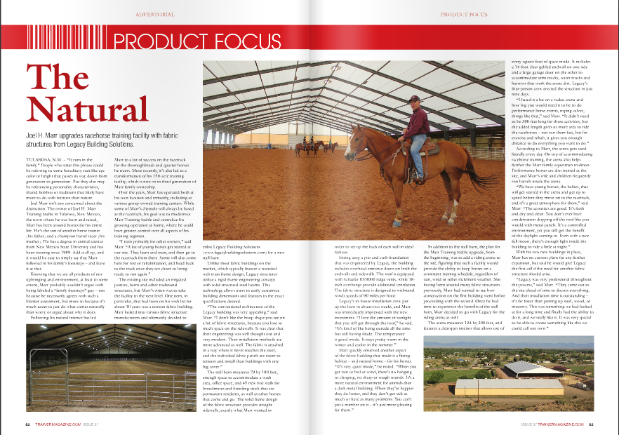 Joel H. Marr upgrades racehorse training facility with fabric structures from Legacy Building Solutions.